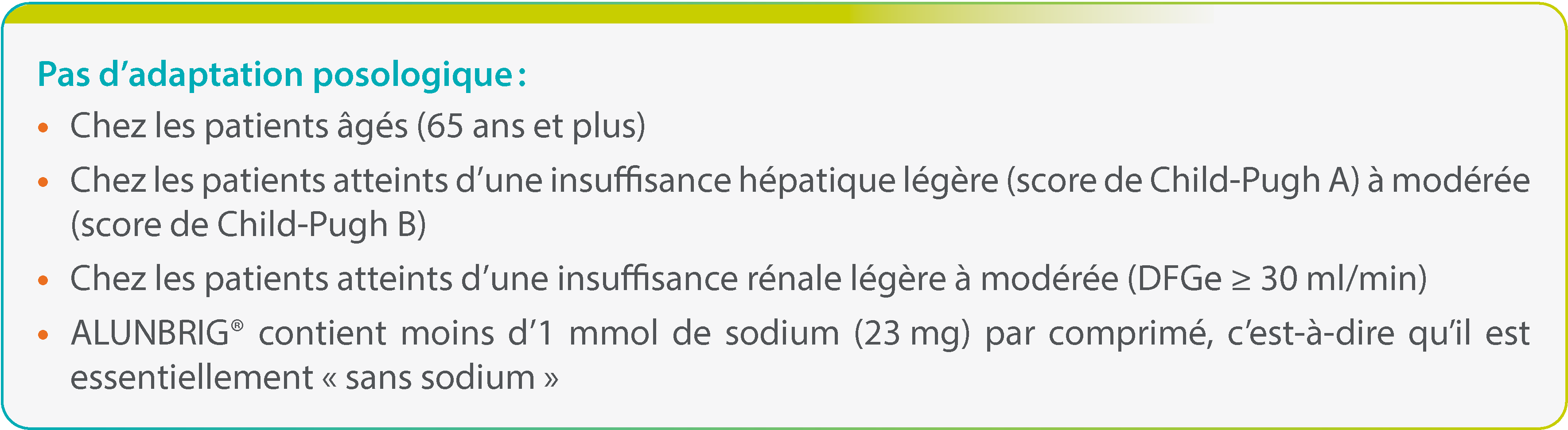 Pour plus d’informations, se reporter au Résumé des Caractéristiques du produit ALUNBRIG®.