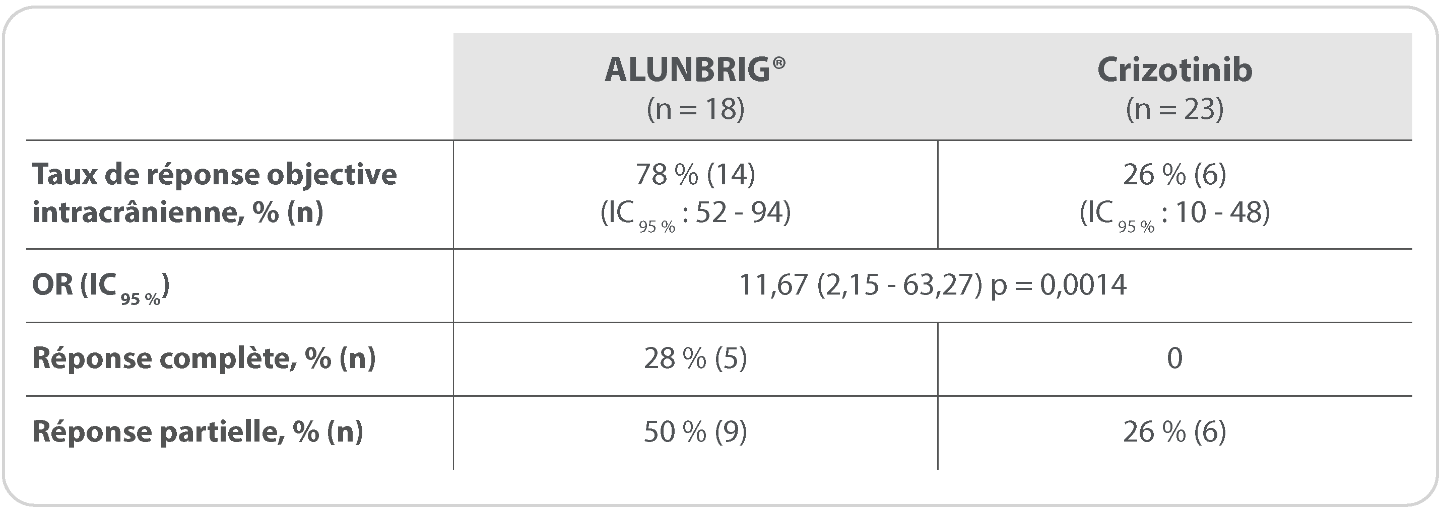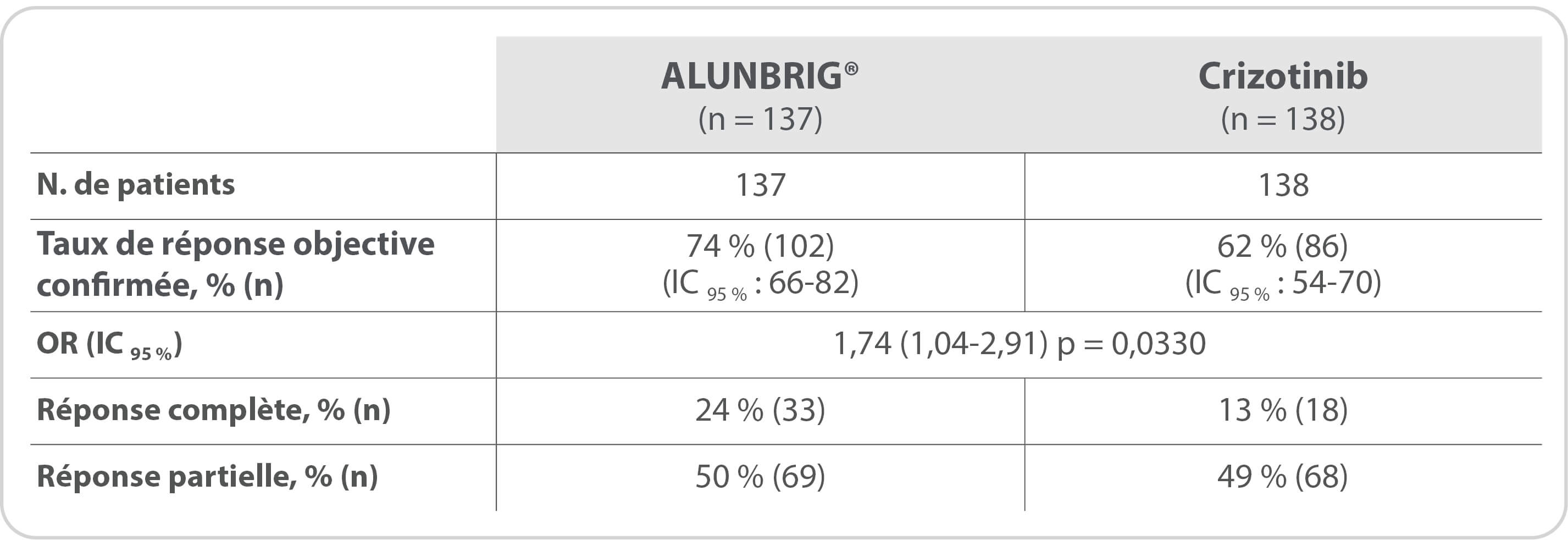 • après cross-over du bras crizotinib au bras ALUNBRIG® : 6 % (4/65)