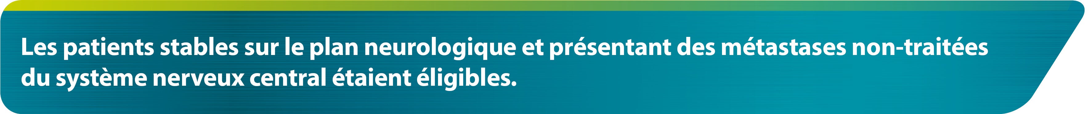 L’analyse en sous-groupes du critère principal était prévue dans le protocole de l’étude clinique et était stratifiée selon la présence de métastases cérébrales à l’inclusion et l’administration d’un traitement antérieur par chimiothérapie.